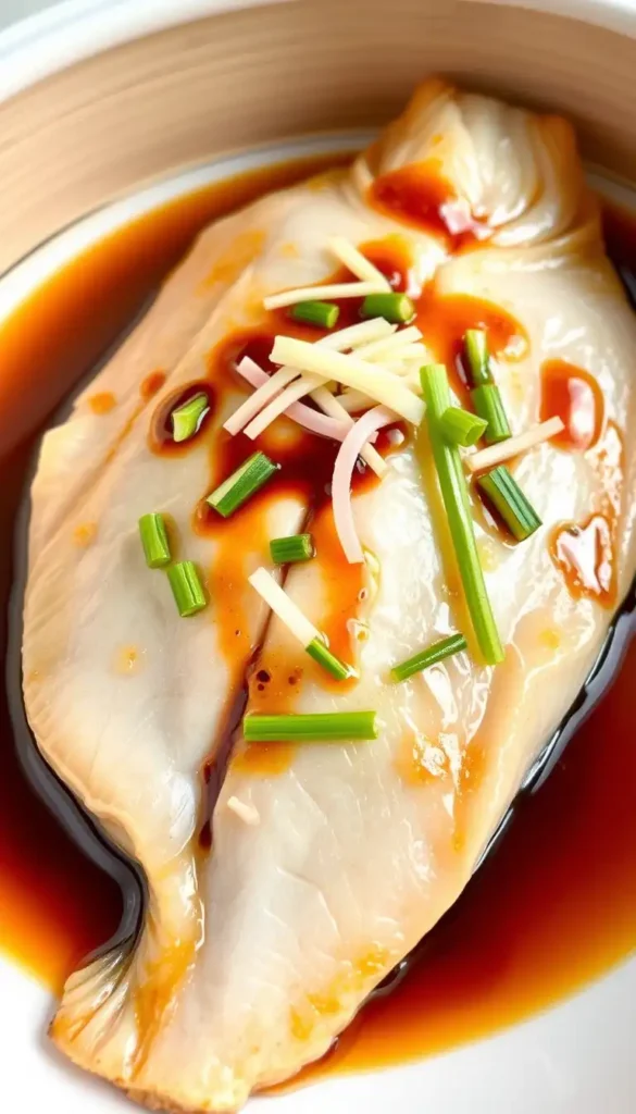 - Place fish on a heatproof plate, top with ginger and green onions.