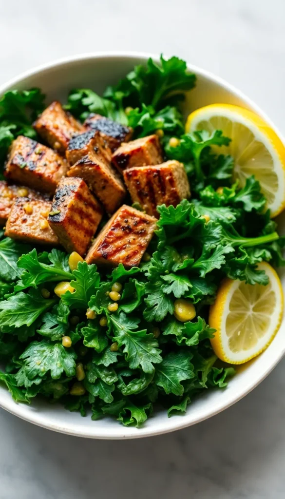 Ingredients: Steak, massaged kale, lemon dressing