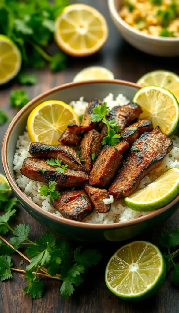 Ingredients: Steak, rice, lime juice
