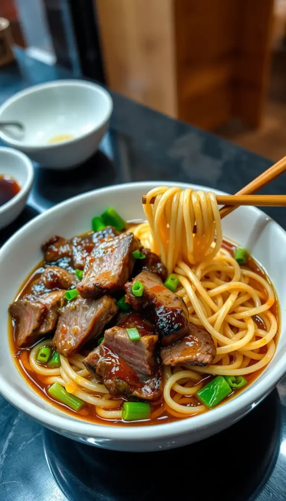 Ingredients: Steak, noodles, soy sauce