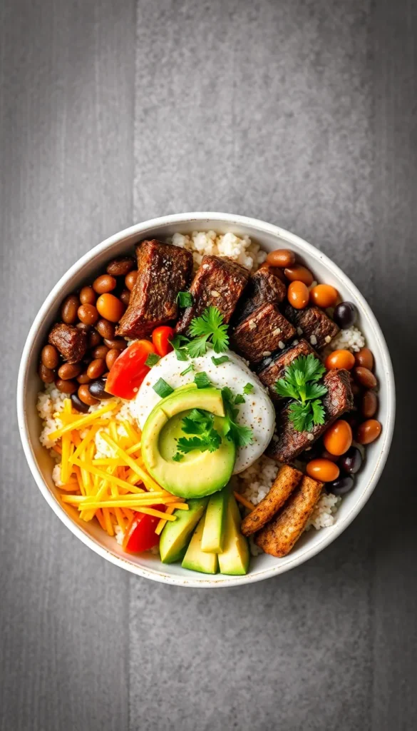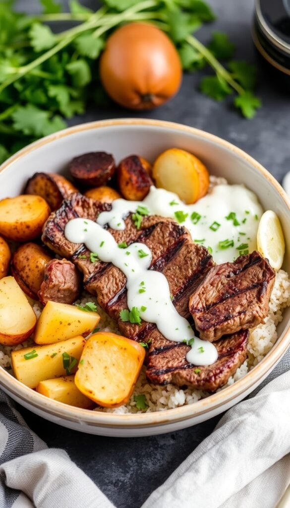 A steak bowl is a complete meal served in a bowl, featuring juicy cooked steak paired with a base like rice, quinoa, or greens, and topped with vegetables, sauces, and garnishes. Steak bowls are customizable, protein-rich, and suitable for various diets, including high-protein, keto, paleo, and balanced meal plans.