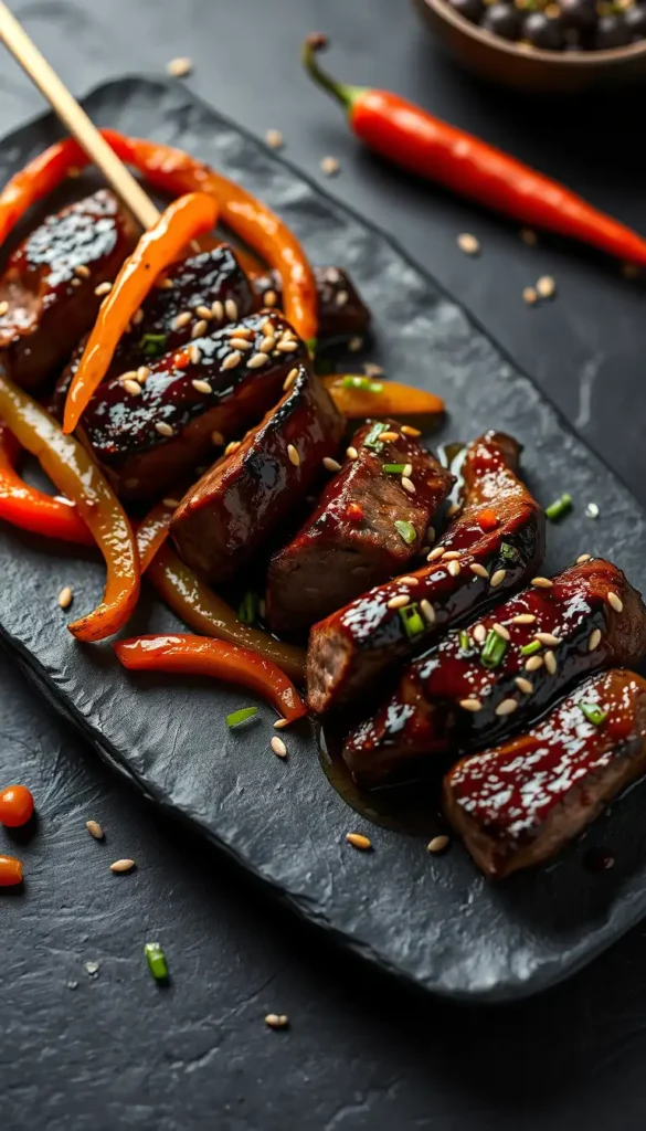 Gochujang and sesame oil create bold fusion flavors.