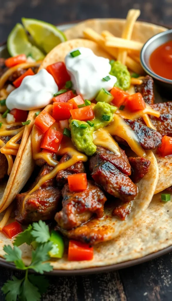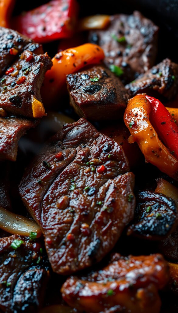 The magic lies in marinated steak, caramelized peppers and onions, and warm tortillas—all coming together in a sizzling presentation.