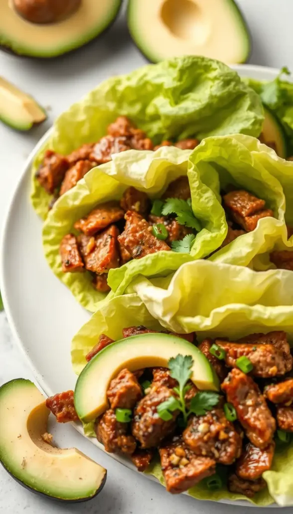 Low-carb fajitas served in lettuce wraps.