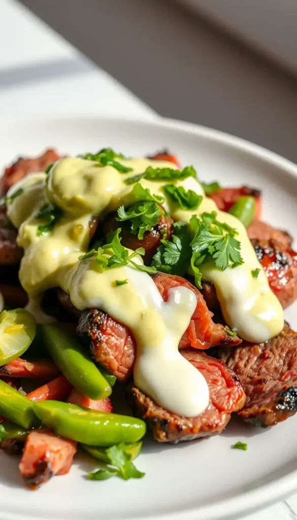 26. Steak Fajitas with Avocado Cream