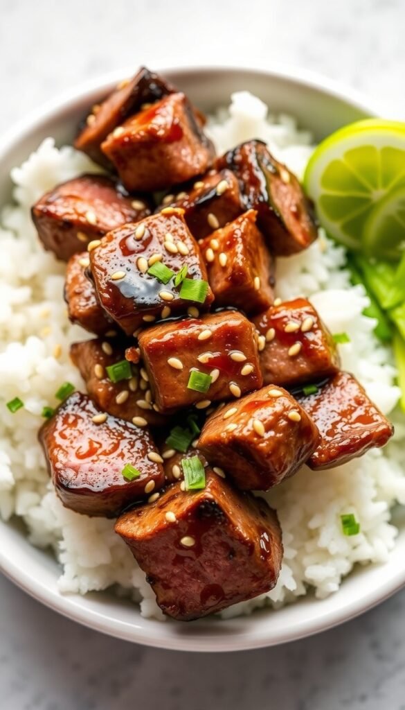 6. Honey Garlic Steak Rice Bowl