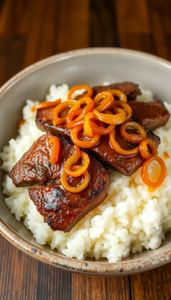 17. Japanese Steak Rice Bowl (Gyudon Style)
