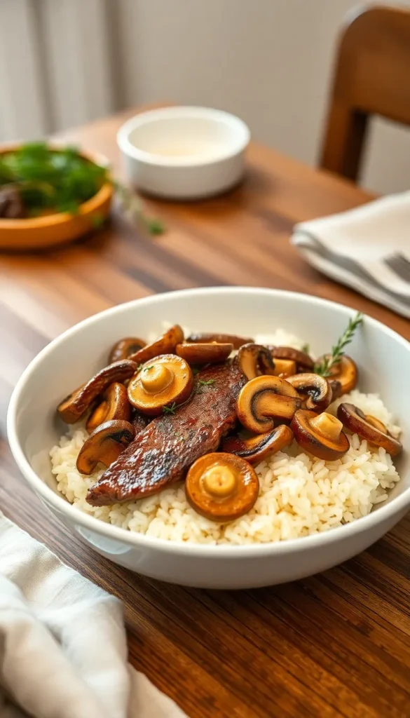 8. Steak and Mushroom Rice Bowl