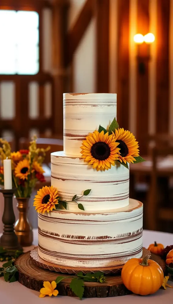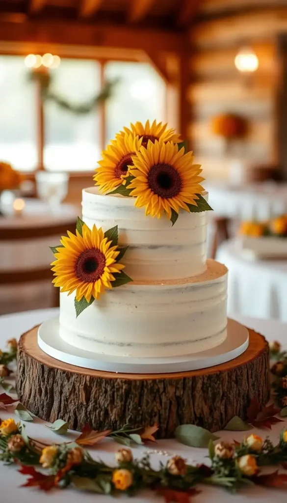 47. Autumn Sunflower Wedding Cake