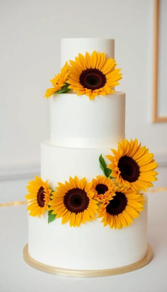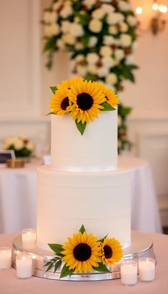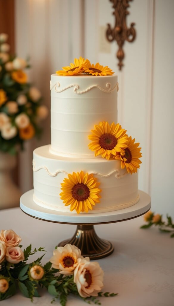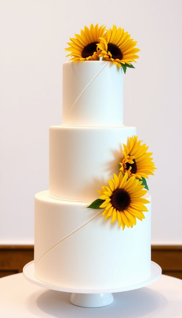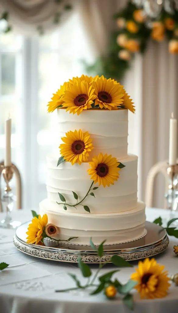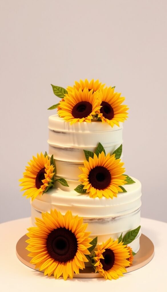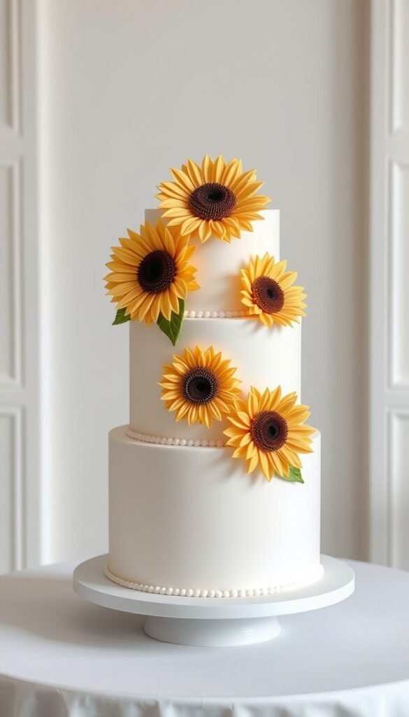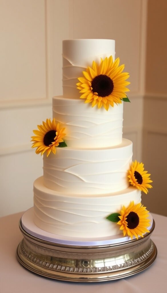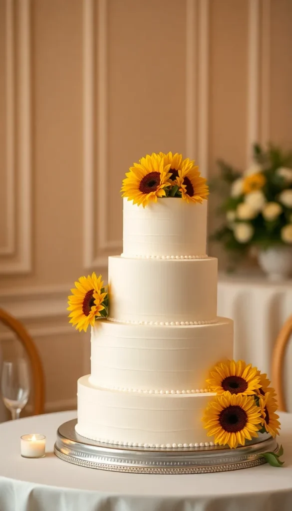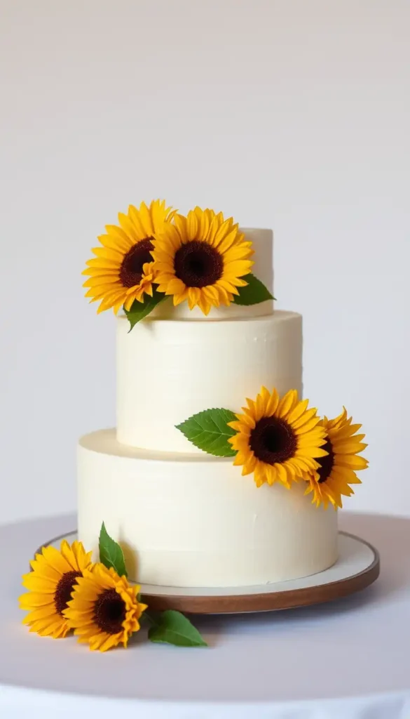 1. Classic Vanilla Sunflower Wedding Cake