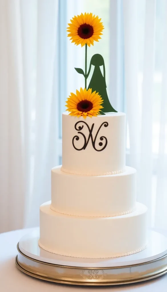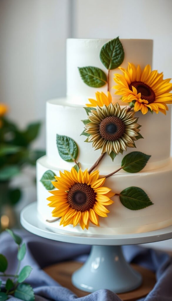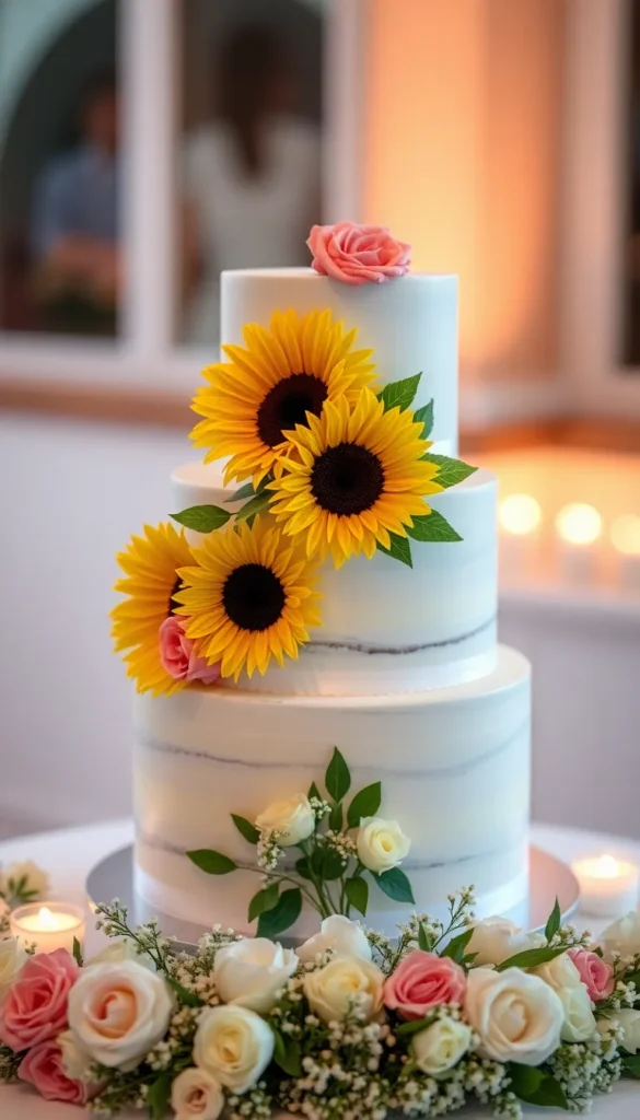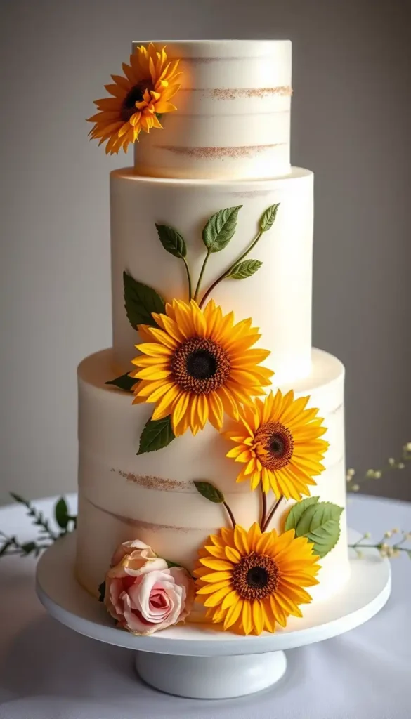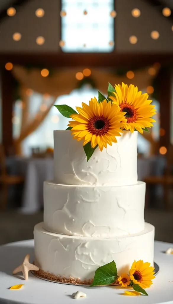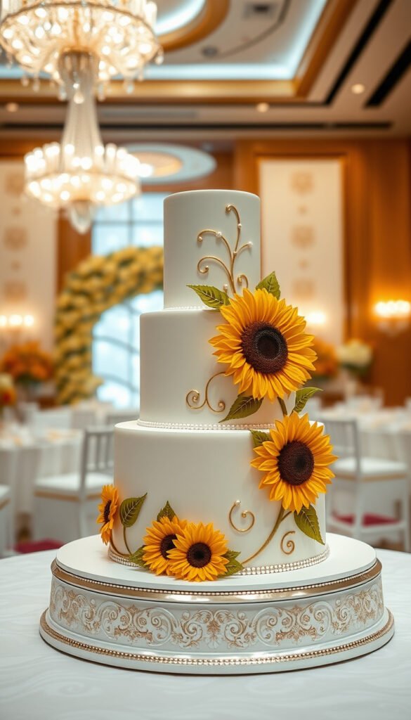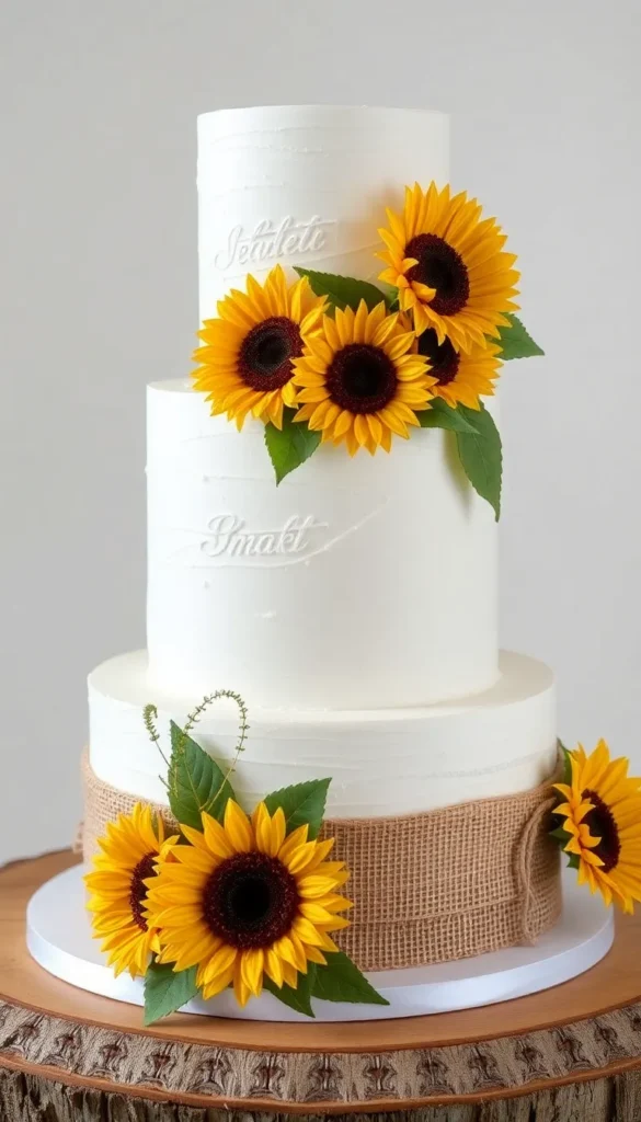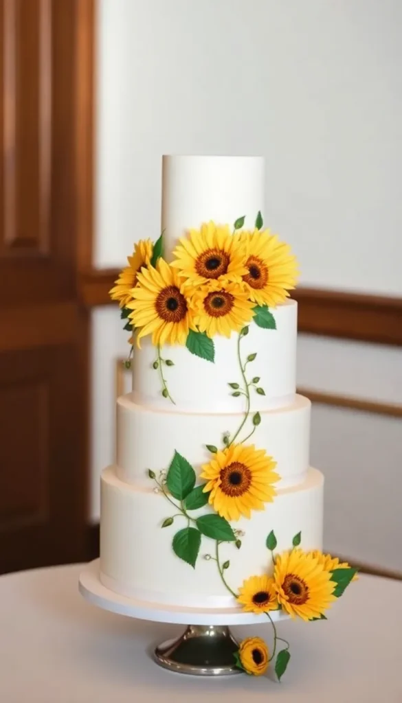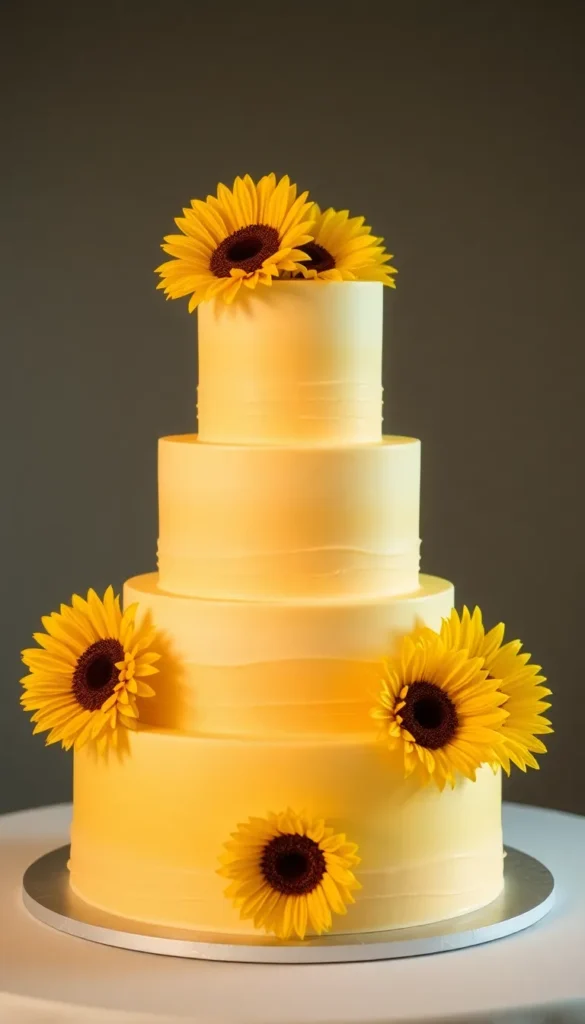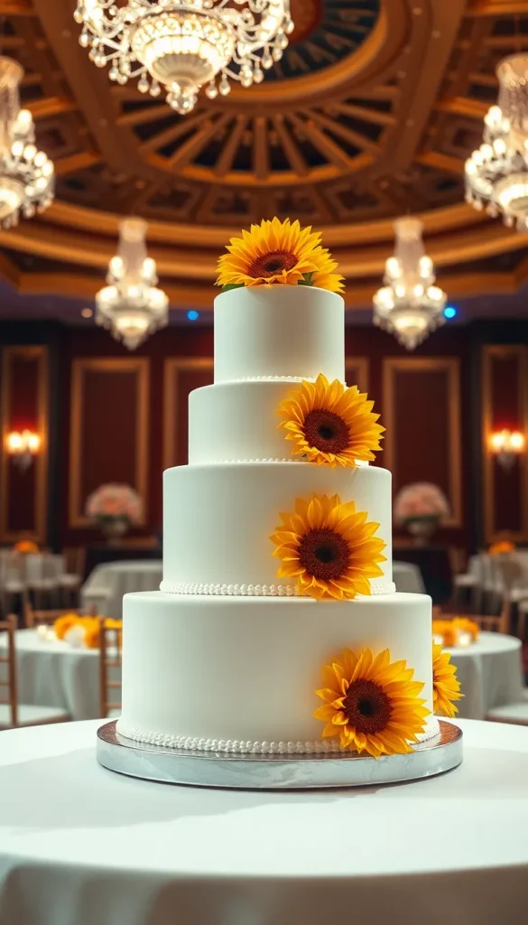 1. Classic Vanilla Sunflower Wedding Cake