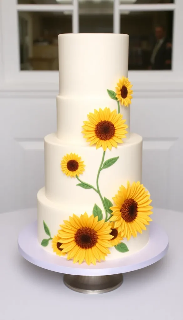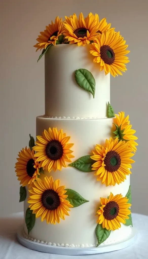 5. Ivory Fondant Sunflower Cake