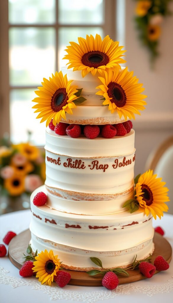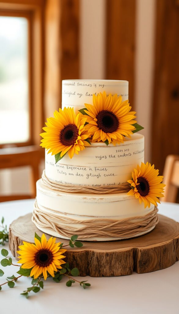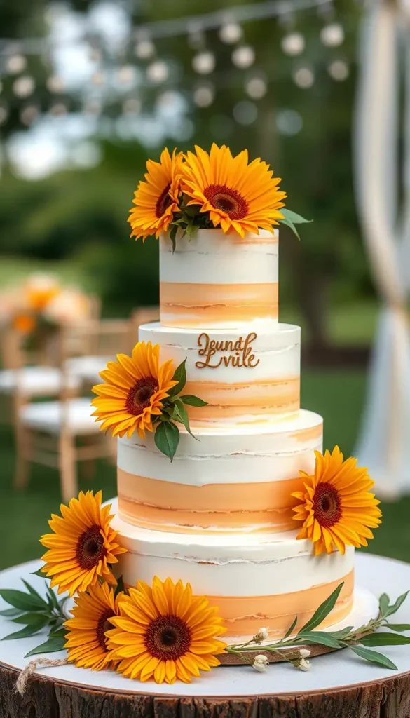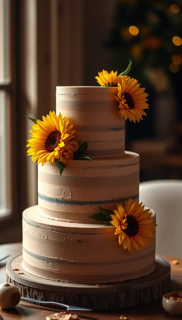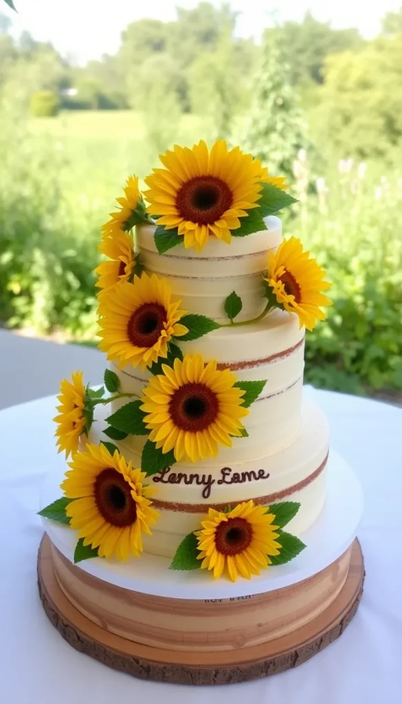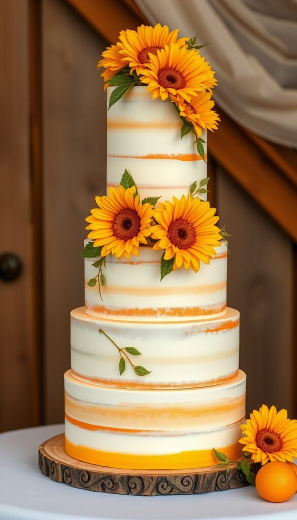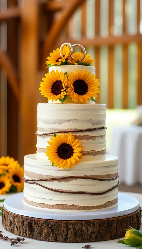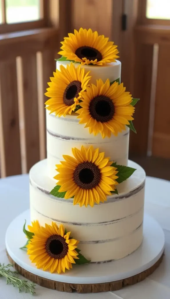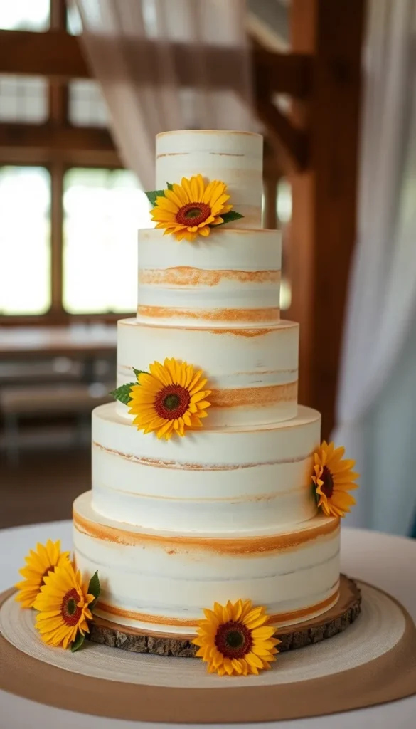 32. Four-Tier Rustic Sunflower Cake