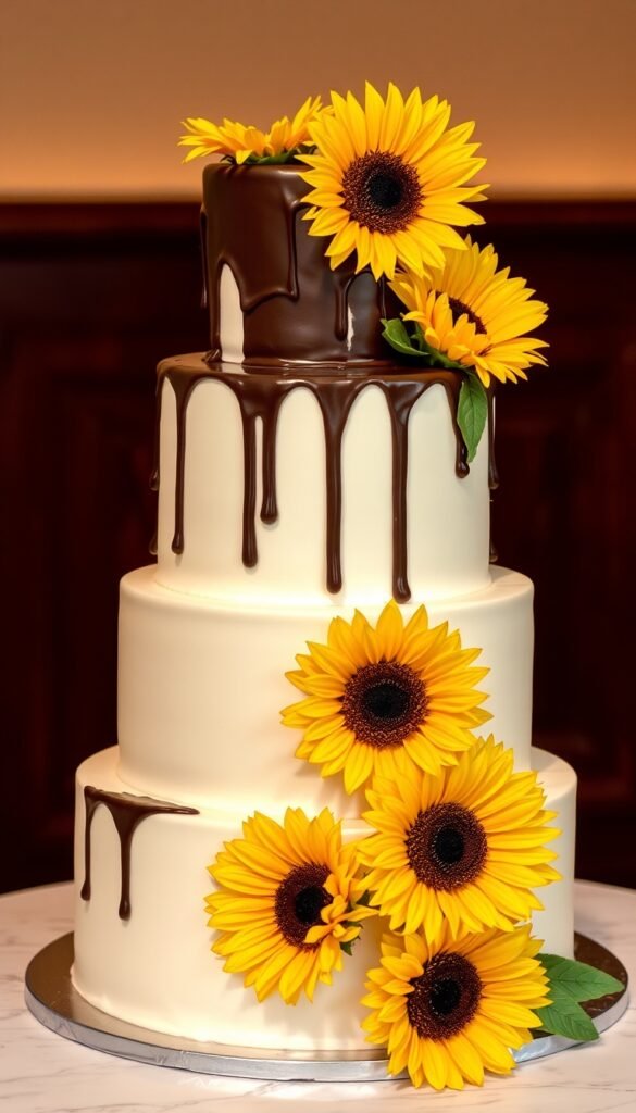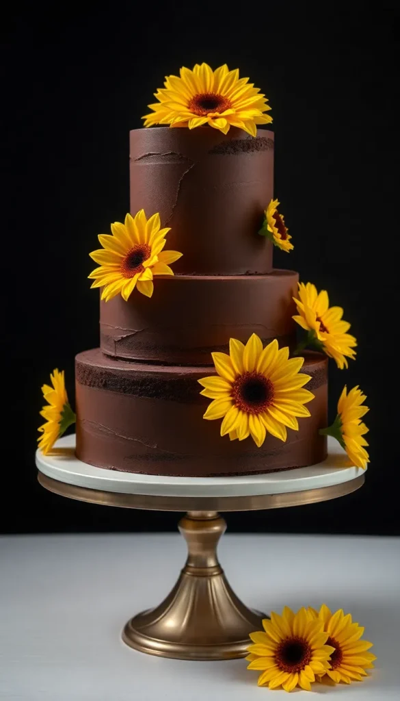 11. Chocolate Sunflower Wedding Cake