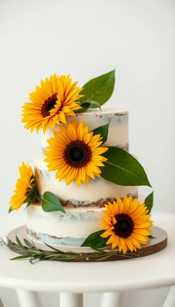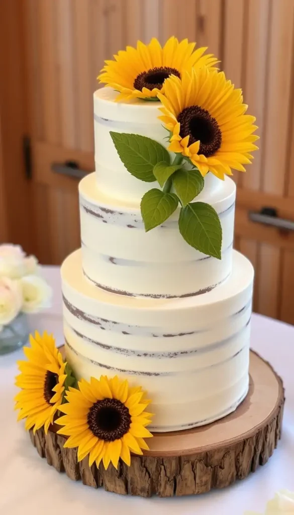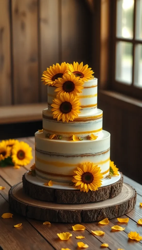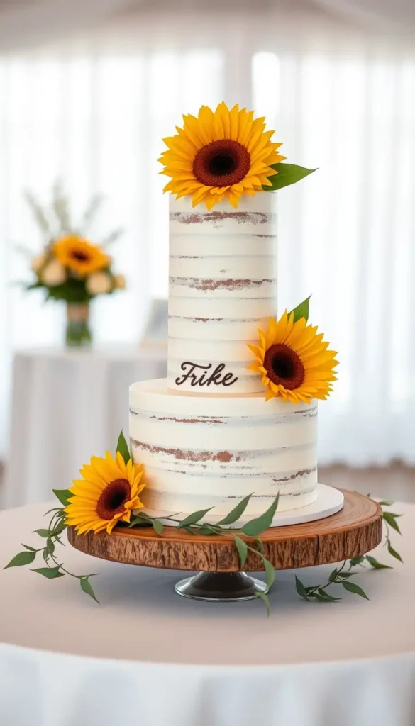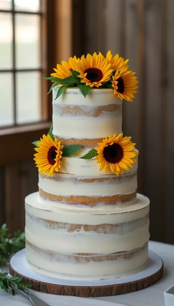 6. Naked Sunflower Wedding Cake