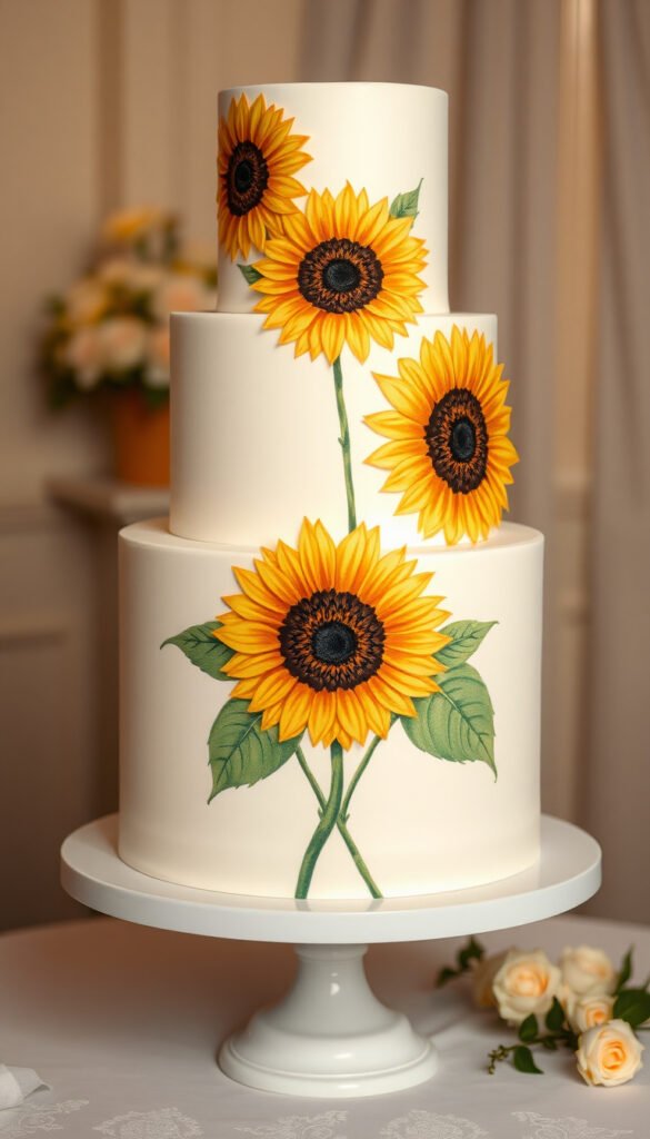 30. Hand-Painted Sunflower Cake