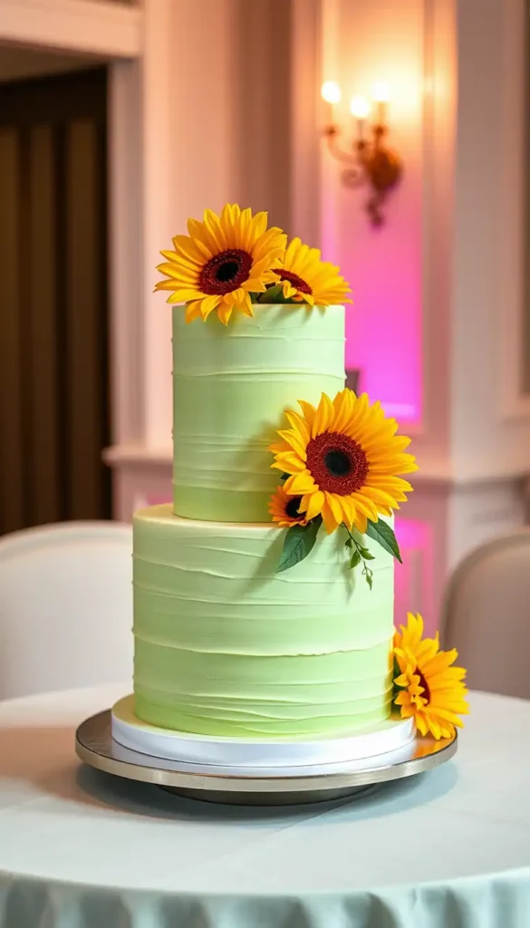 Stack tiers. Decorate each with sunflowers.