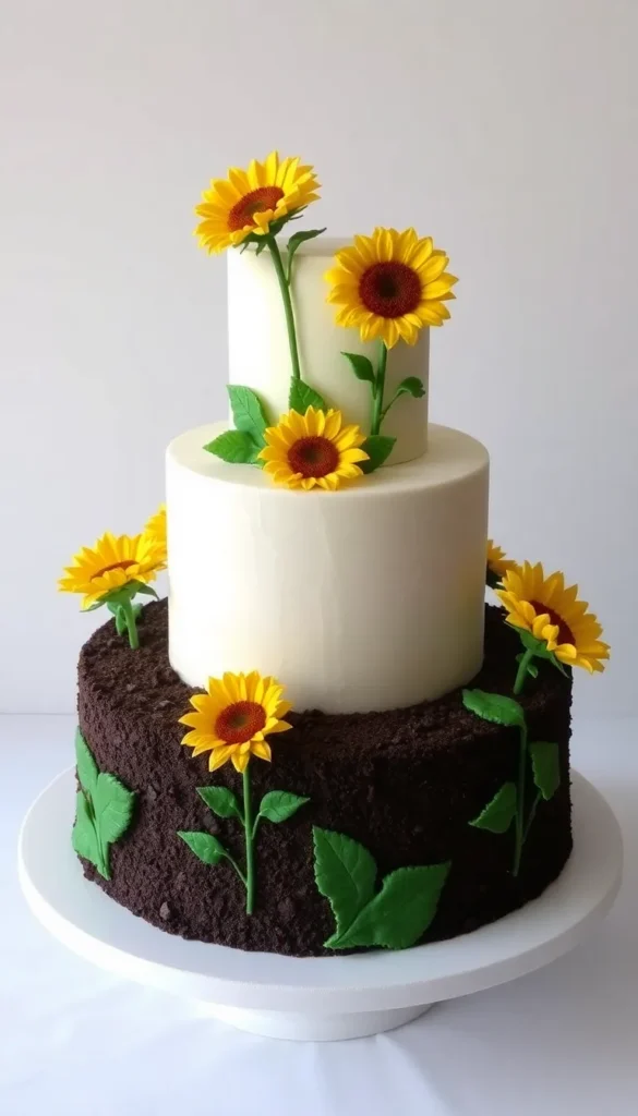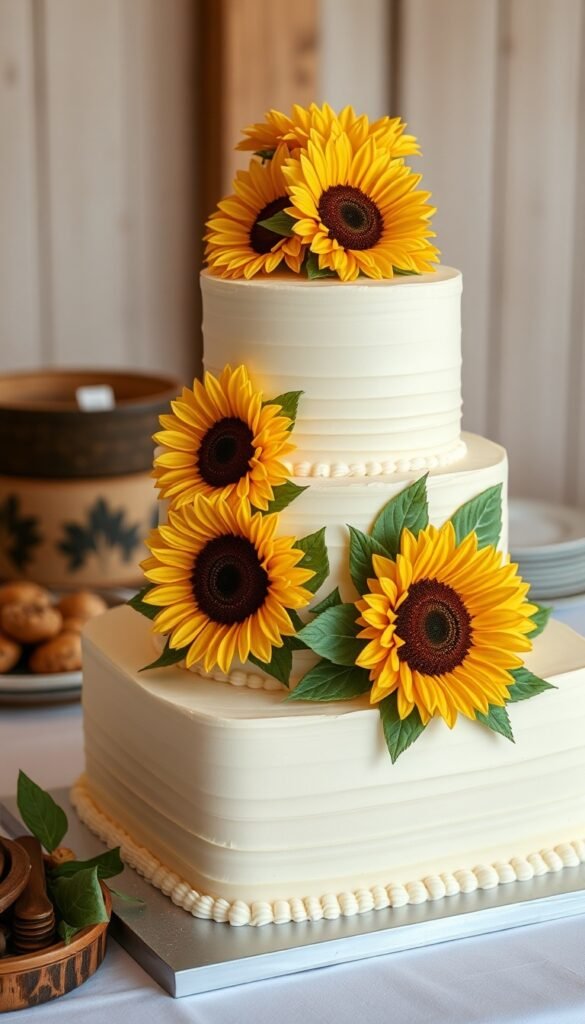 10. Wheat-Tone Farmhouse Sunflower Cake