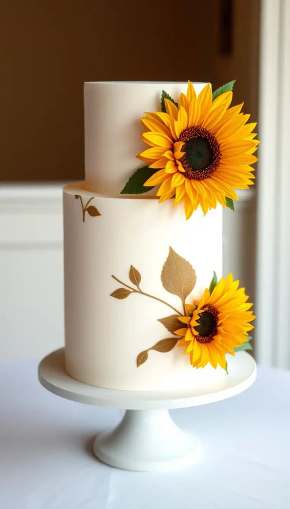 27. Gold-Accent Sunflower Cake