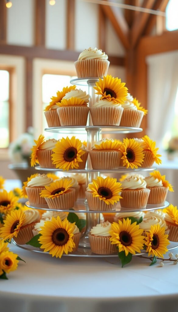 38. Sunflower Cupcake Tower