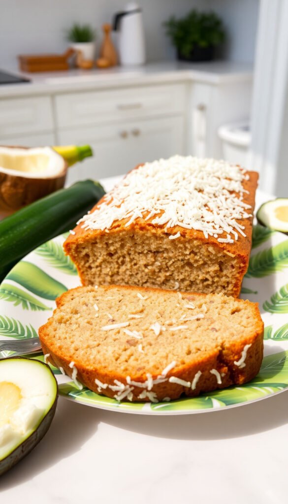 Shredded coconut and coconut oil make this bread tropical and fragrant.